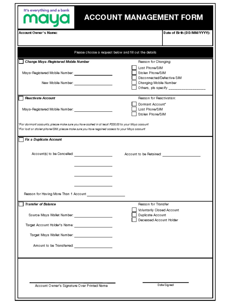 Account Management Form Download Free PDF Mobile