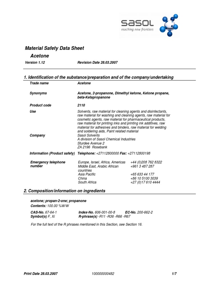 Safety data sheet section 1: Avoid contact with skin, eyes and. If released on soil, acetone will both. Safety data sheet product name: Safety data sheet version 6.7 revision date 08/06/2024 print date 08/06/2024 section 1: