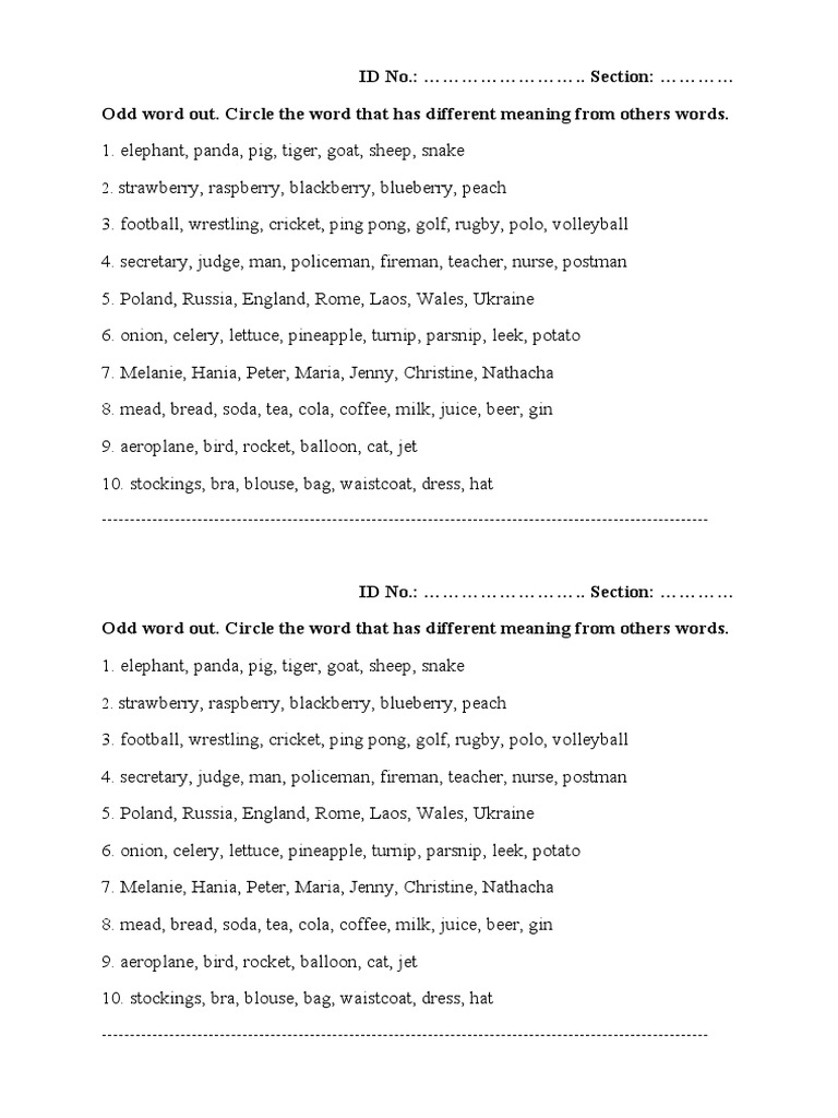 English Words & Vocabulary Worksheets Odd Word Out 3 Teaching