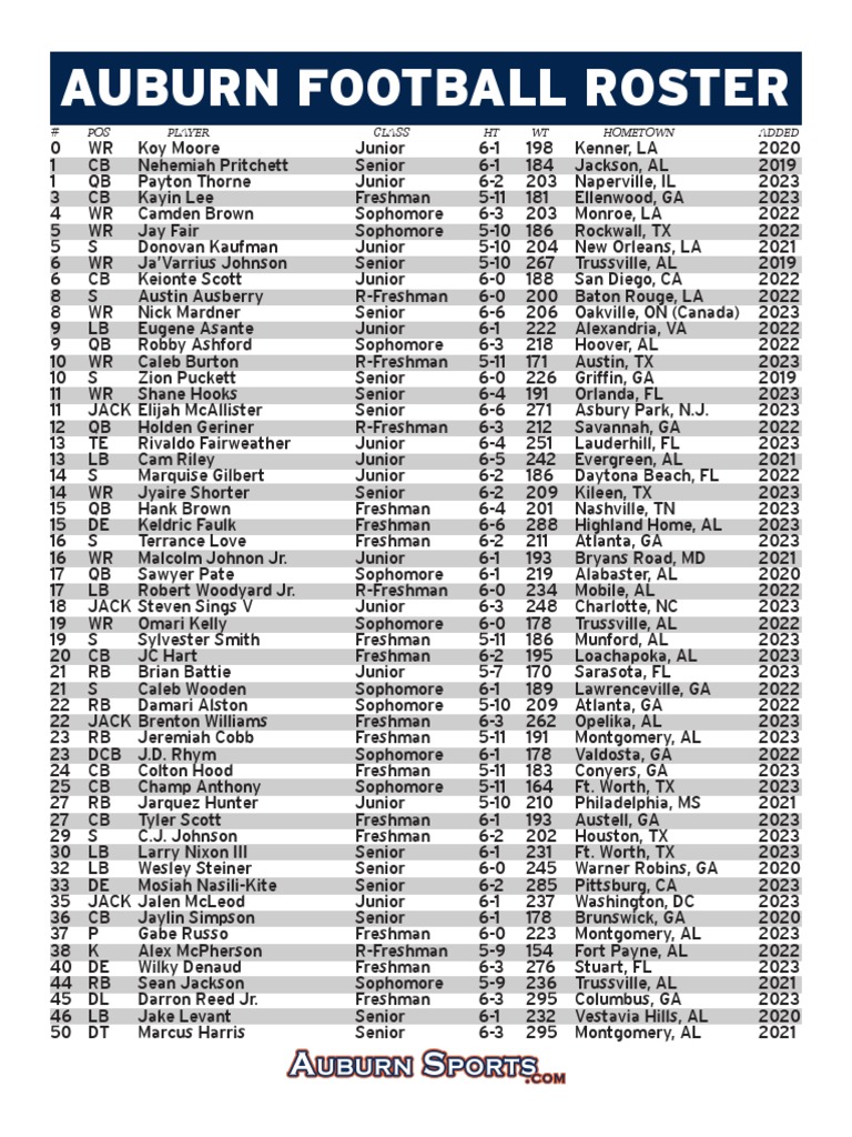 AUBURN FOOTBALL ROSTER 2023 (Page 1) PDF American Football