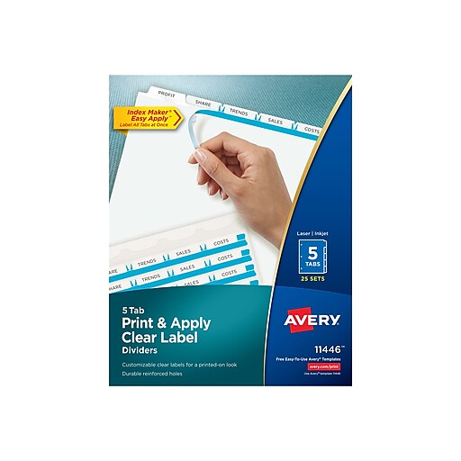 Avery 5 Tab Template 11446 Avery Print Apply Clear Label Dividers Index