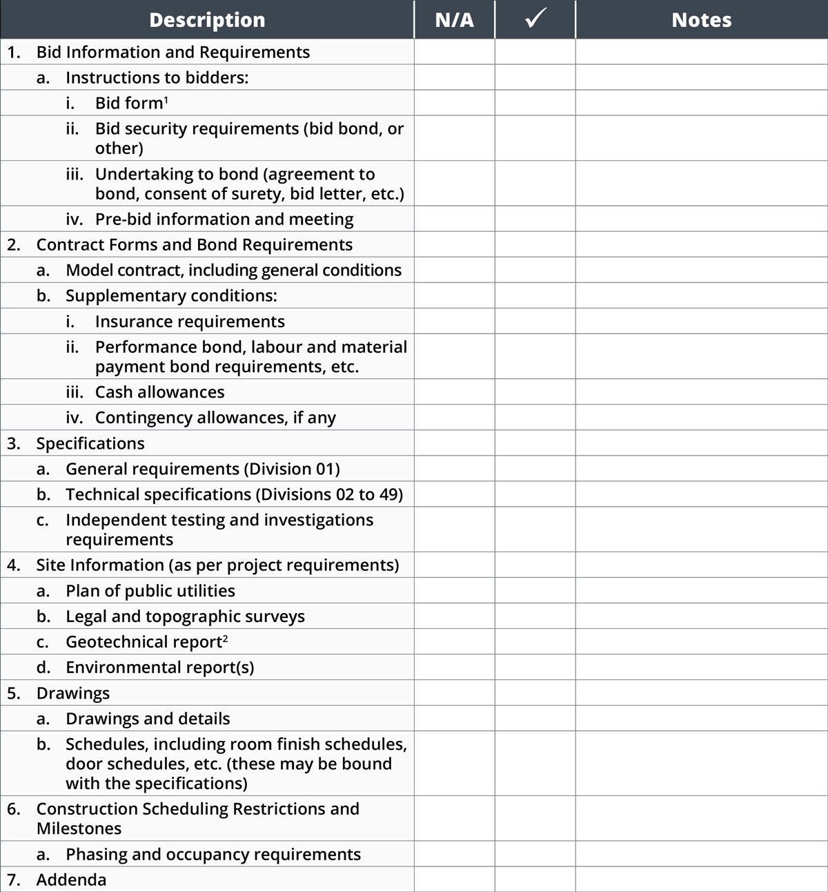 Construction Bid Checklist Template Google Docs, Google Sheets, Excel