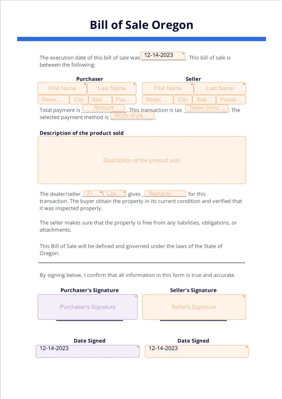 Oregon Auto Bill of Sale Template in PDF, Word, Google Docs Download