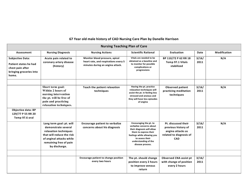 Care plan CAD CAD care plan Professional Nursing Care Plan The