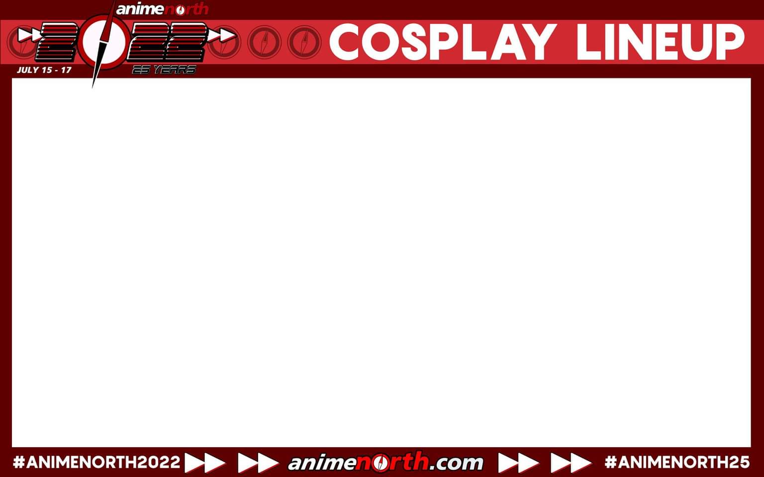 Nakama, cosplay lineup graphics are ready! So show us what you've got planned! We have three variants ready to go. Apply to be a cosplay judge!. Use the template above to show your cosplay line up!
