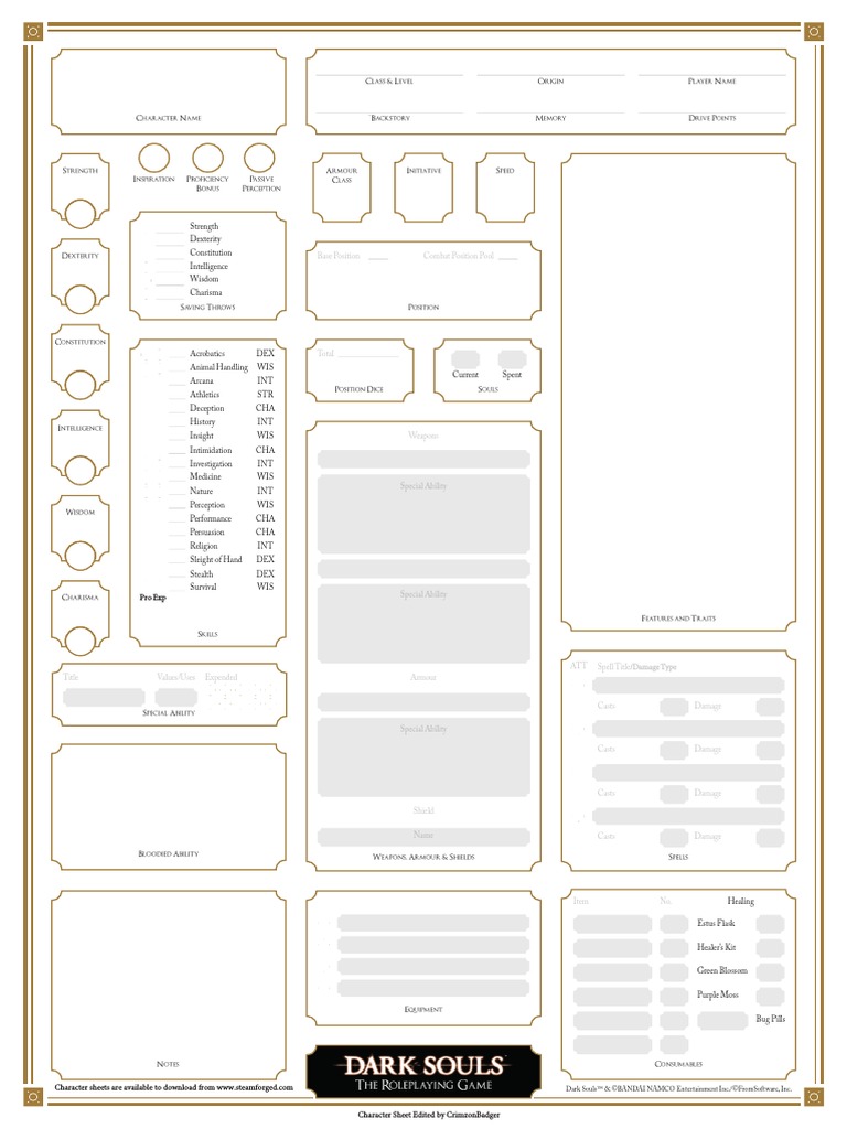 Dark Souls Dnd Character Sheet