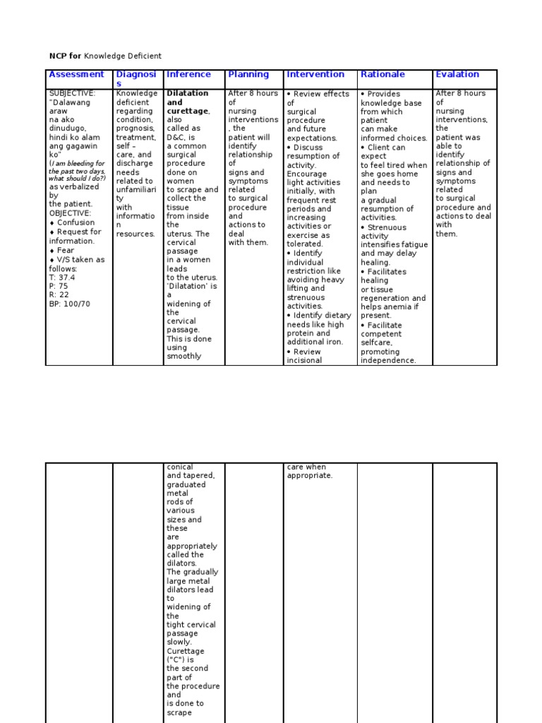 Nursing Diagnosis Deficient Knowledge Related To knowledge