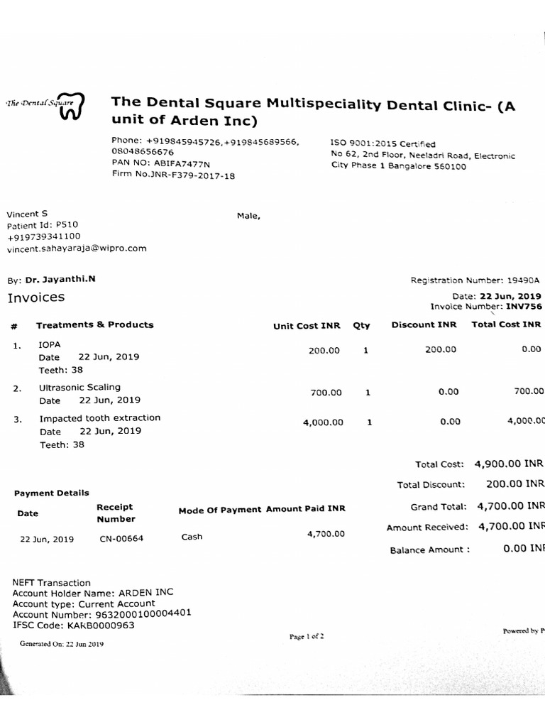 Dental Invoice Template