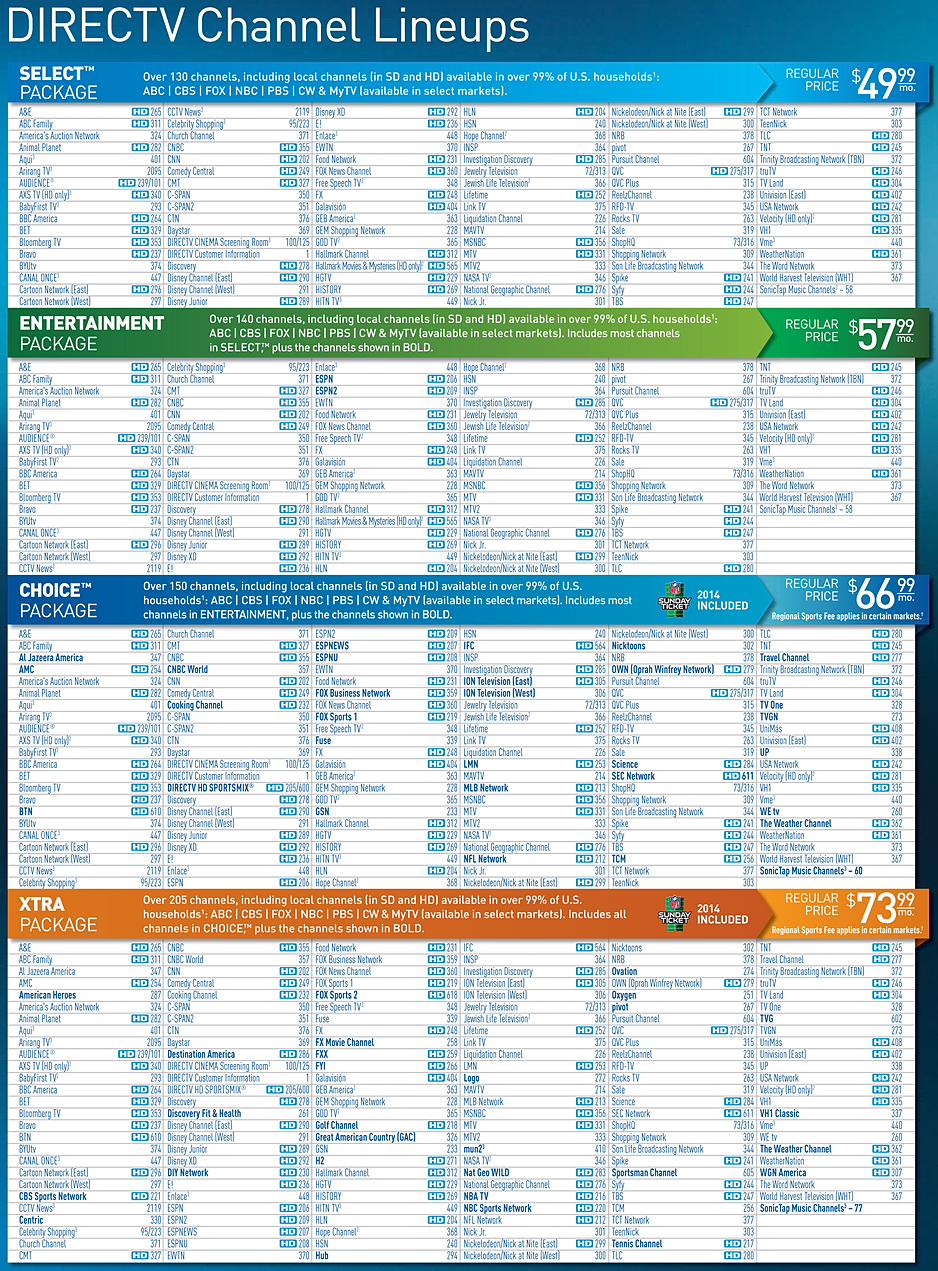 This page is the directv channel guide listing all available channels on the directv channel lineup, including hd and sd channel numbers, package. From the home screen, select guide. Directv via internet channel lineup (pdf) view channels. Check out channel lineup for directv via internet; H***to access directv hd programming, a directv slimline dish, along with directv hd receiver (h20.