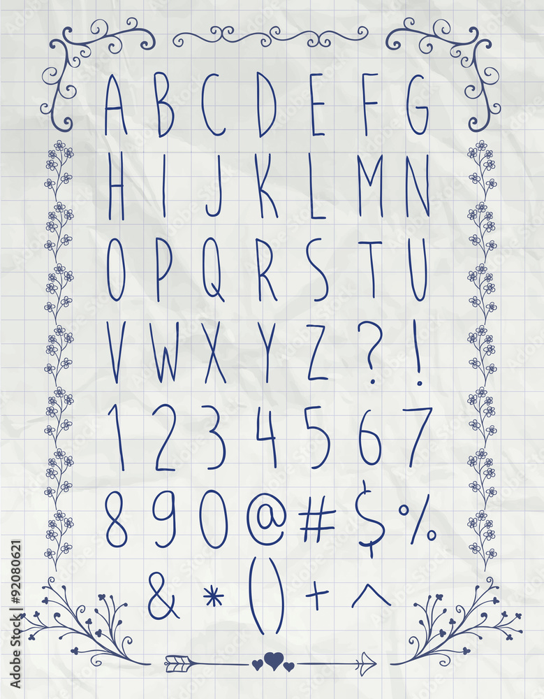Simple Pen Drawing English Alphabet Letters on Paper Stock Vector