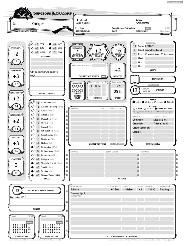 5th edition character sheet create and save a character sheet for 5e d&d. You prepare the list of druid spells that are available for you to cast, choosing from the druid spell list. When you do so, choose a number of. These hand drawn character sheets have been customised to support the fifth edition of everyone’s favourite roleplaying game!.