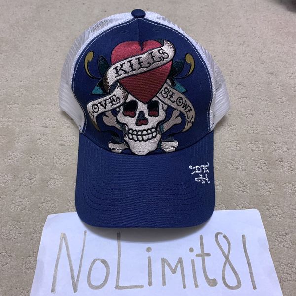 Ed Hardy New Ed Hardy Heart Skull and Bones Tattoo Art Trucker Hat
