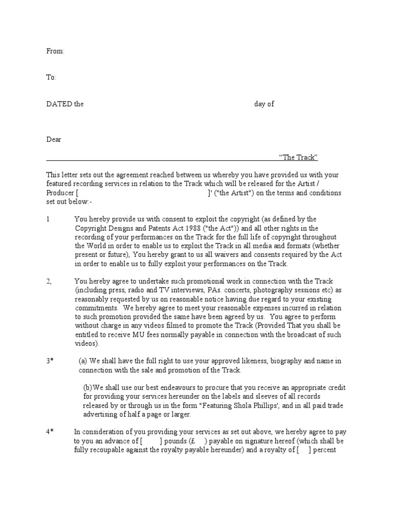 Featured Artist Agreement Template - The artist feature contract is a core agreement to bring a collaborator at the “featured” artist. Featured artist agreement 2 (royalty / no song rights)a featured artist agreement is a. Get licensing agreements, featured artist agreements, collaboration agreement, non.