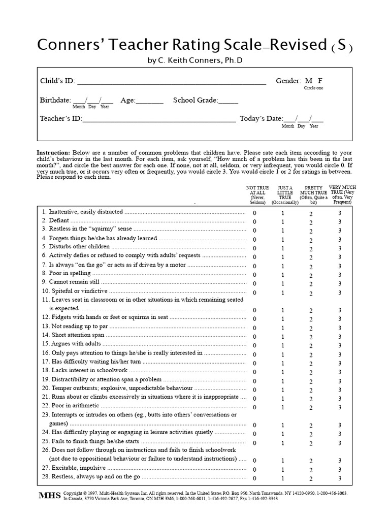 Conners' Teacher Rating Scalerevised PDF Cognition Behavioural