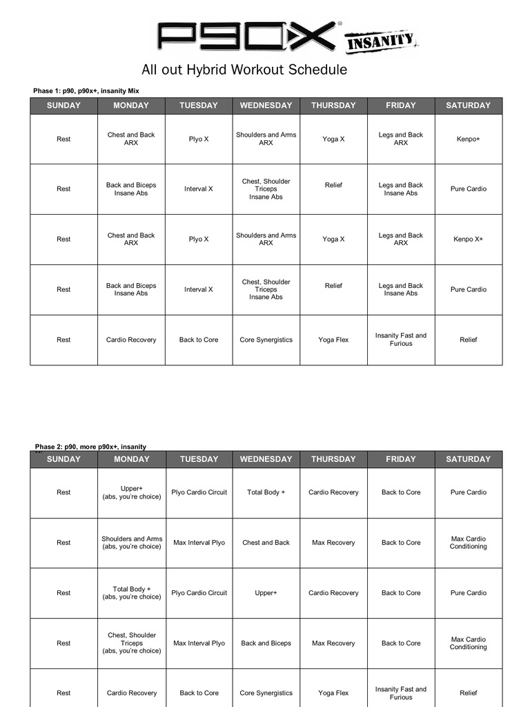 Insanity Workout Schedule 10 Free PDF Printables Printablee