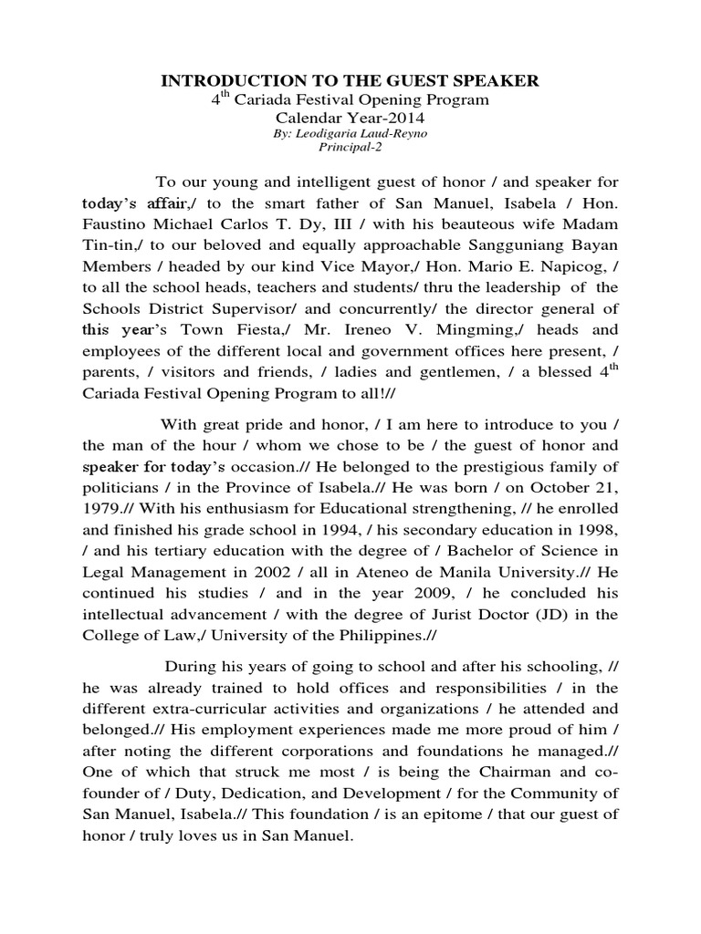 How To Introduce A Guest Speaker Sample Free Word Template