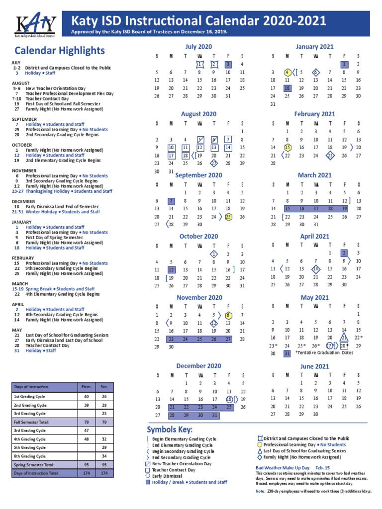 Katy ISD Instruc Onal Calendar 20202021 PDF Academic Term Homework