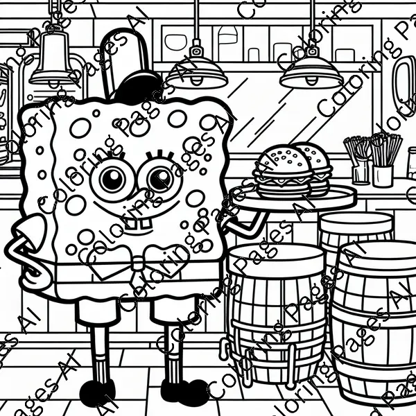 Spongebob At The Krusty Krab Coloring Page Coloring Pages AI