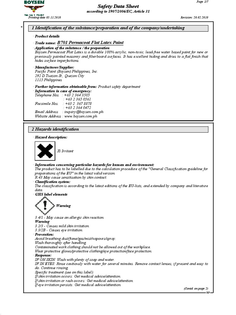 Material Safety Data Sheet Nippon Paint Malaysia at Skye Dyason blog