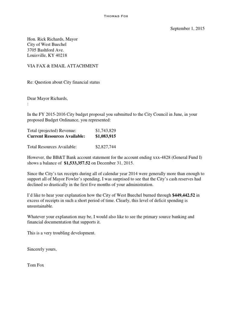 Letter To The Mayor Template