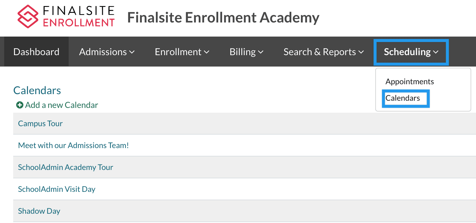 Public Calendar Links Finalsite Enrollment