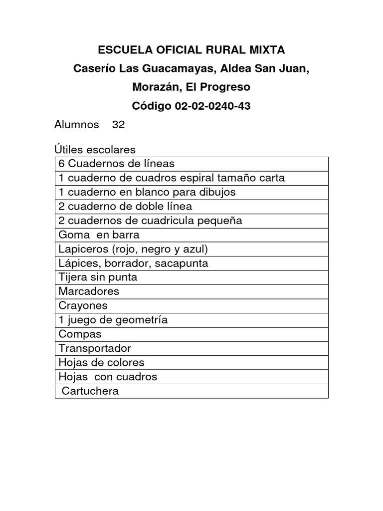 Lista DE Utiles Escolares Lista de útiles escolares 4 grado primaria
