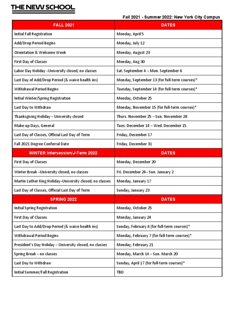 Mannes 2122 University Academic Calendar NYC Sep 2021 PDF