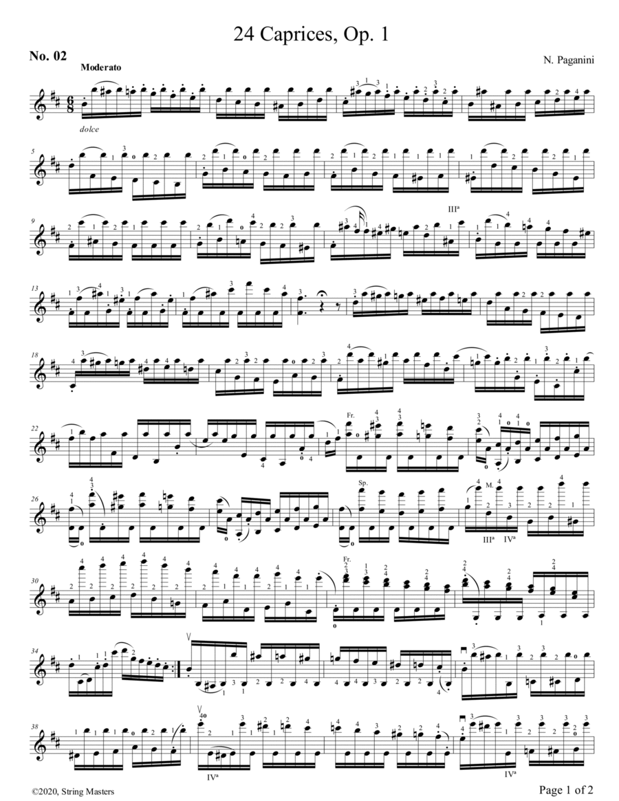 Paganini 24 caprices for Violin, No. 02 by Nicolo Paganini Violin