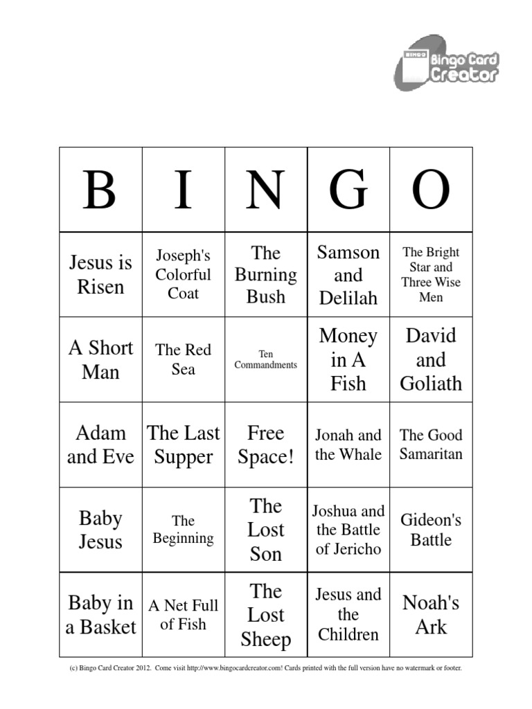 Free Printable Bible Bingo Printable And Enjoyable Learning