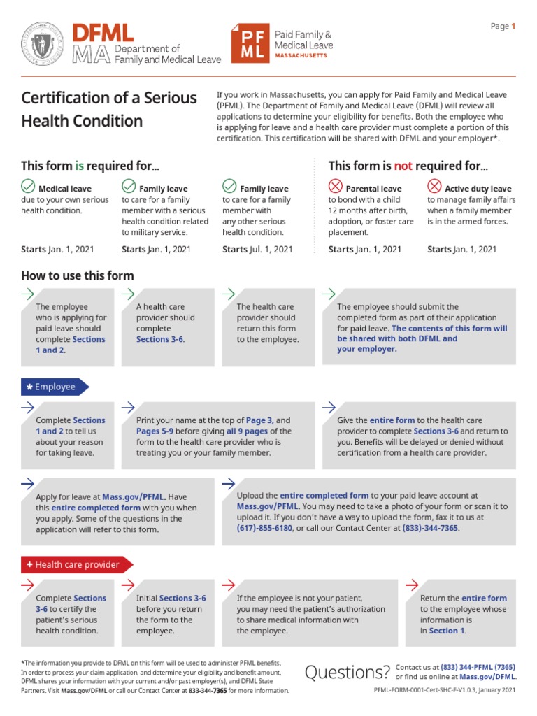 1.f applicable, briefly describe other appropriate medical facts. Download and complete this form to apply for paid medical leave in massachusetts due to your. This form is required for medical leave due to your own serious health condition or family leave to. Leave to care for a family member with a serious health condition including a family member. Certification of.