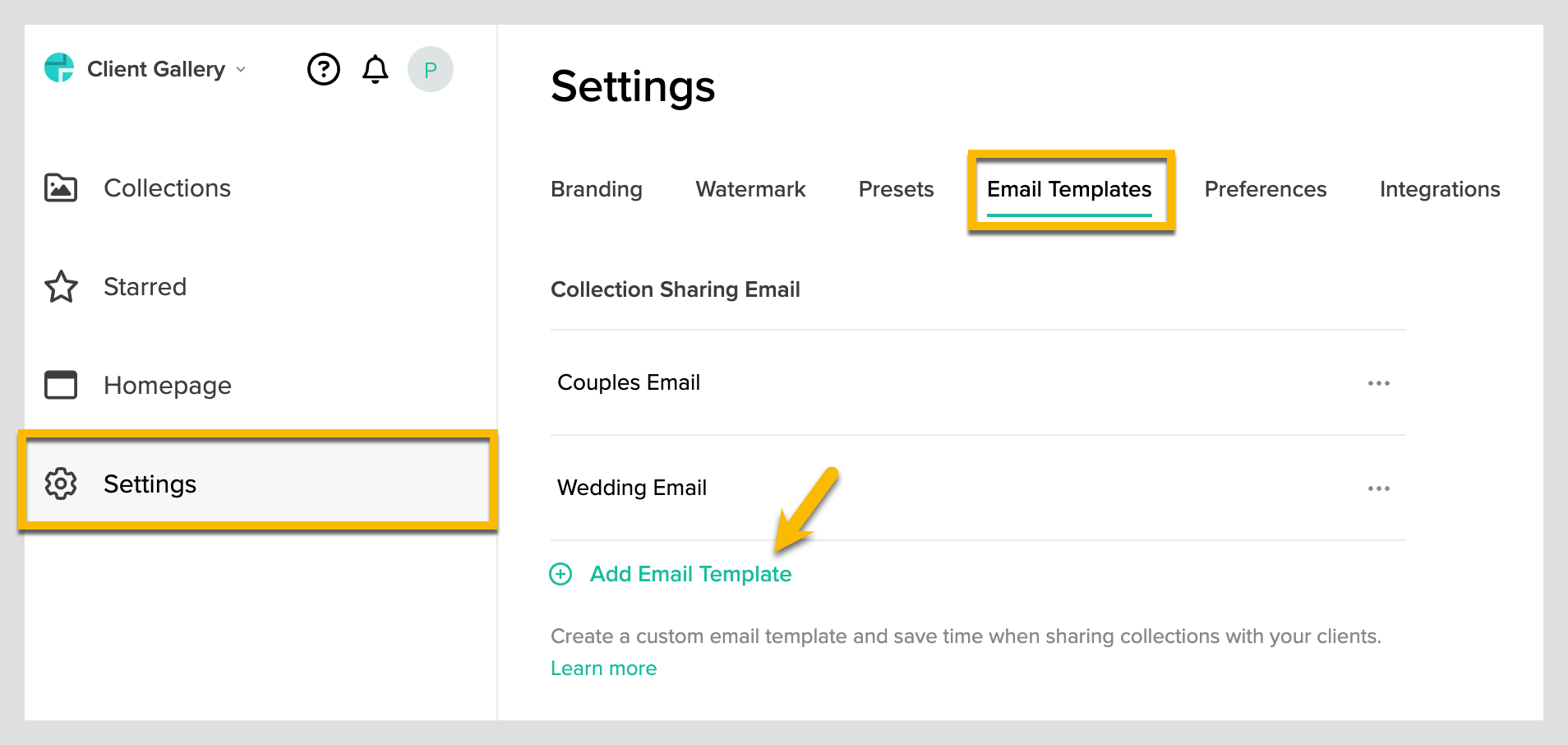 An easy way to quickly prepare email invites for clients is to create custom templates that you. Insert your template with one click when sending an email to keep your workflow. Head to your client gallery dashboard > settings > email templates > add email template.