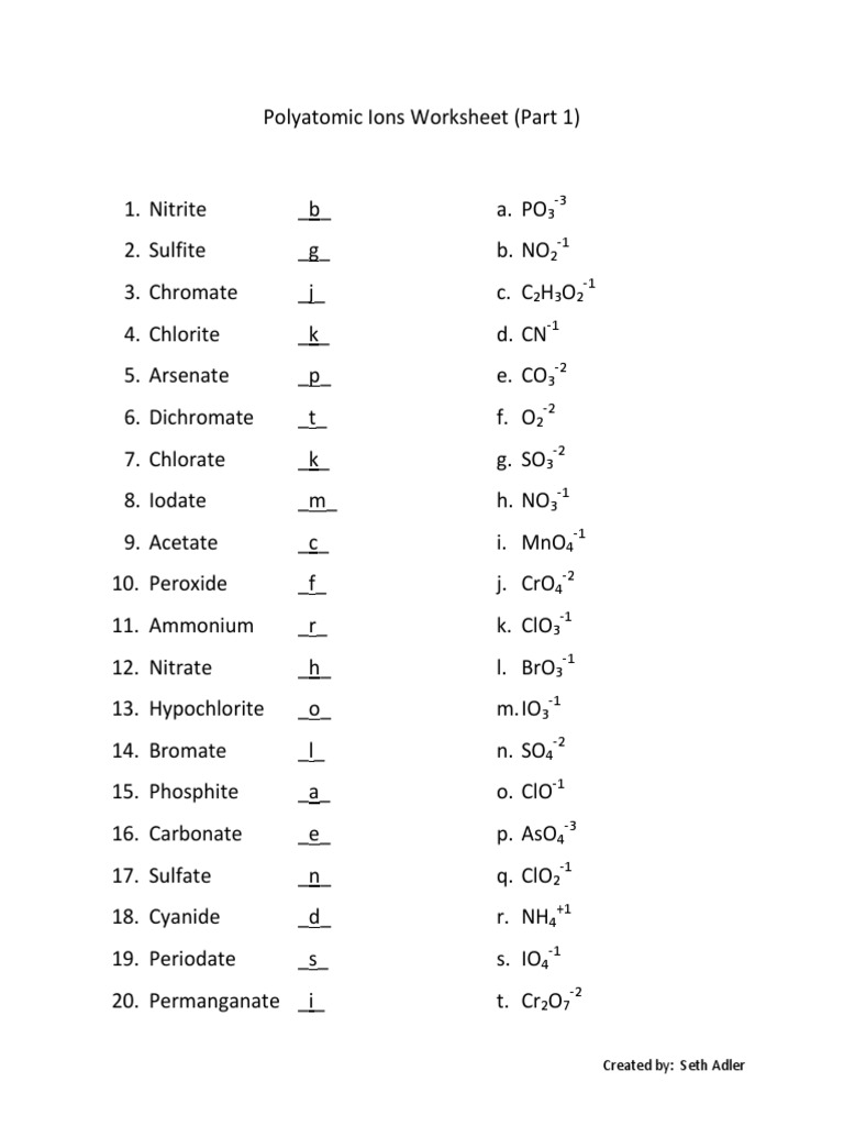 Free Printable Polyatomic Ions Worksheets