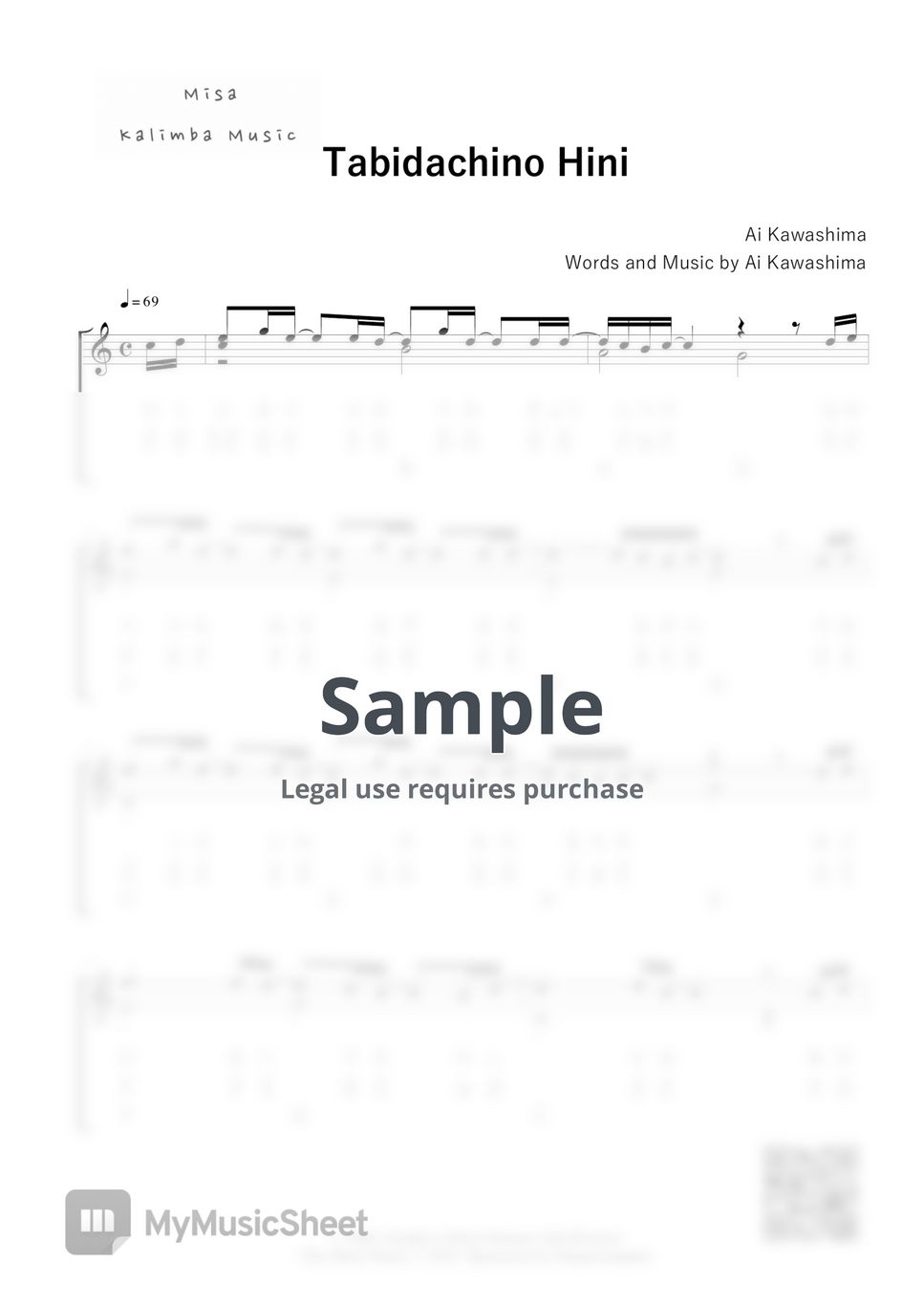Ai Kawashima Tabidachino Hini / 17 keys kalimba / Letter Notation