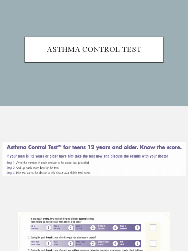 Take the asthma control testtm (act) for people 12 yrs and older. A quick test that provides a numerical score to assess asthma control.