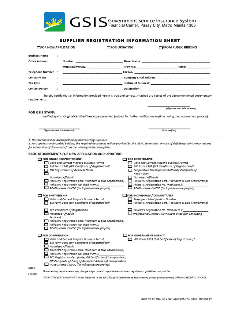 Supplier Registration Information Sheet PDF