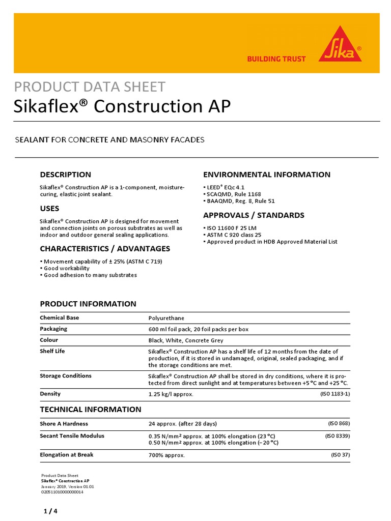Sikaflex® Construction AP Product Data Sheet PDF Concrete Materials