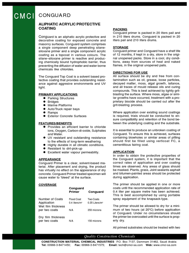 Conguard Aliphatic Acrylic Protective Coating A Technical Data Sheet
