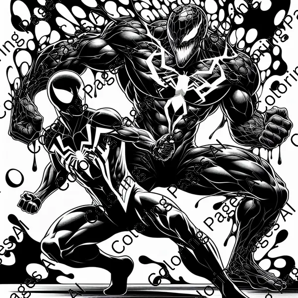 Spiderman Fighting The Venom Symbiote Coloring Page Coloring Pages AI