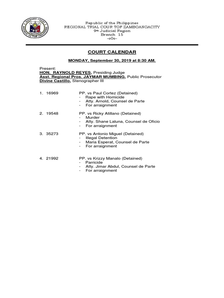 Example of Court Calendar PDF