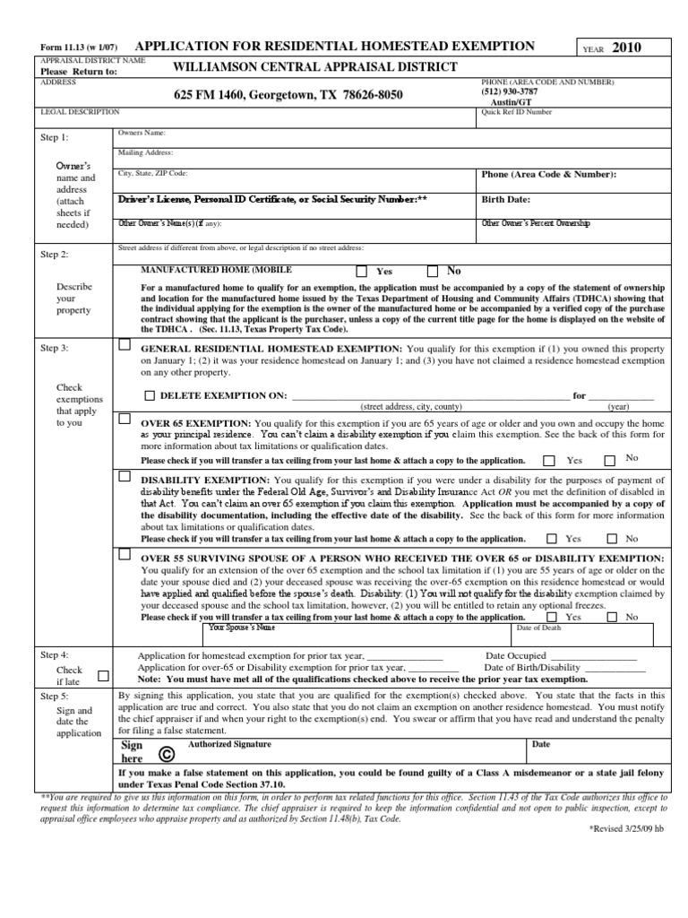 Texas statewide Residence Homestead Exemption Form 50114. homestead